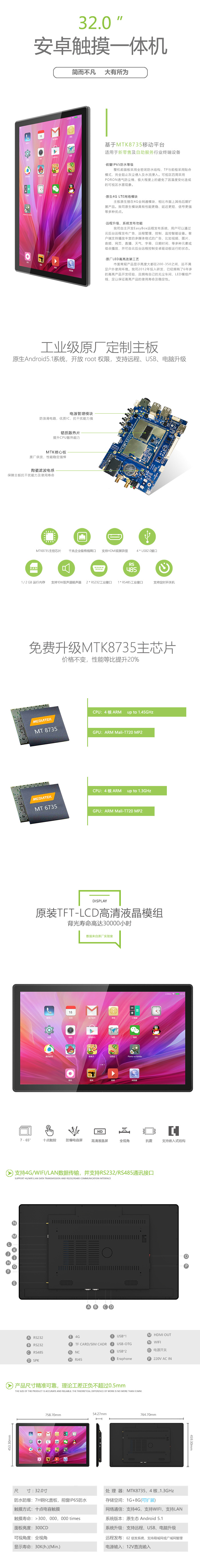 MTK8735,4 核 ARM Cortex-A53,1.3GHz |